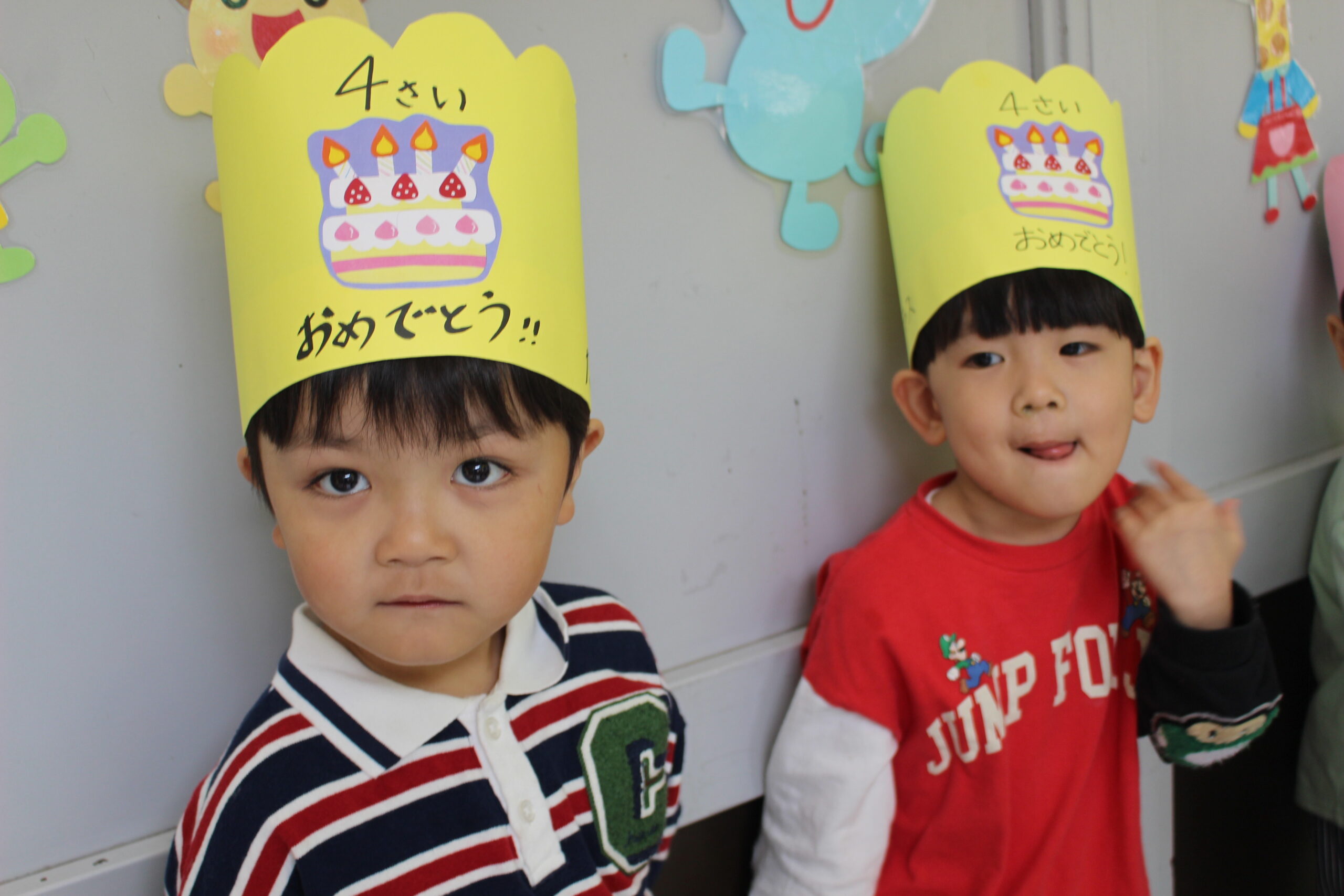 今年度、初めての誕生日会がありました🎉 スタンバイ中の誕生児さんです♡ 誕生児の入場です 誕生児さんに向けて…
