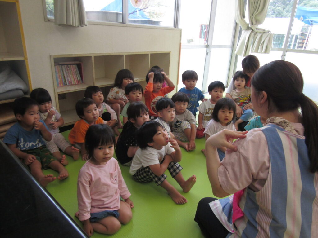 雨が降っていたので、みんな保育室にいるときに起こりました。