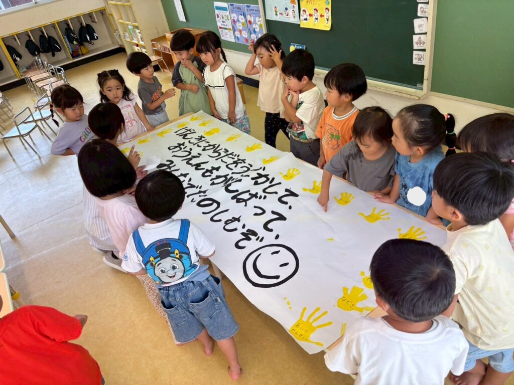 「どんなところをお家の人に見てもらいたい?」「どんな風にがんばりたい?」と、子どもたちへ聞くと、『泣かない、かっこいいところ、元気にがんばる』など、たくさんの声がありました☆