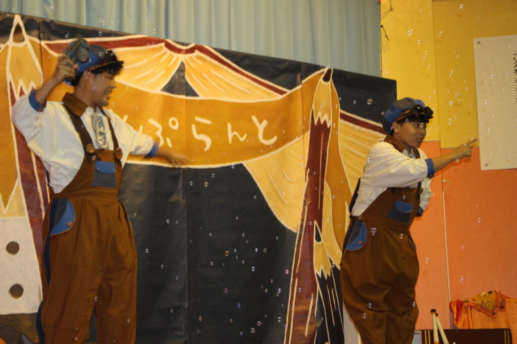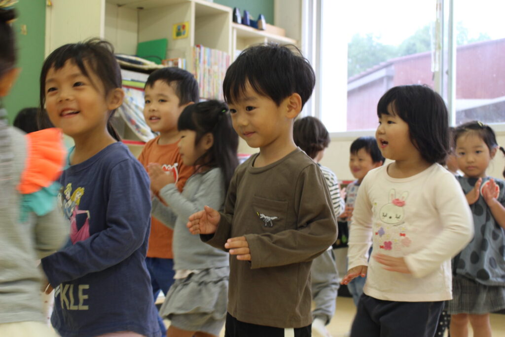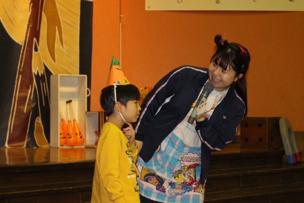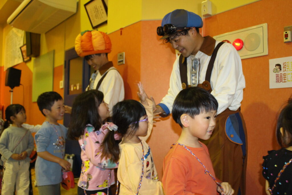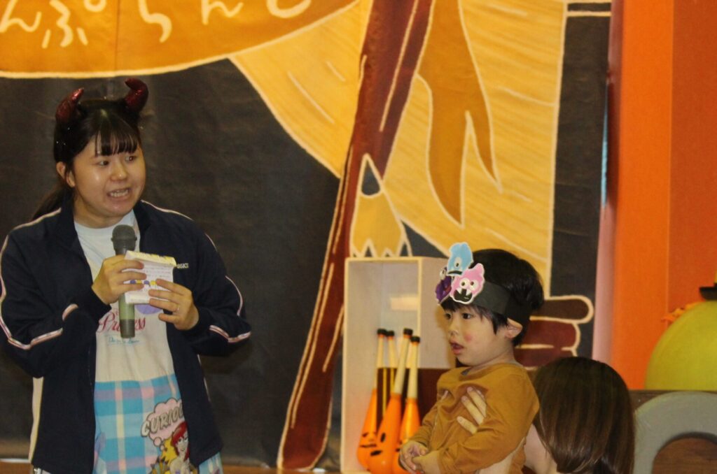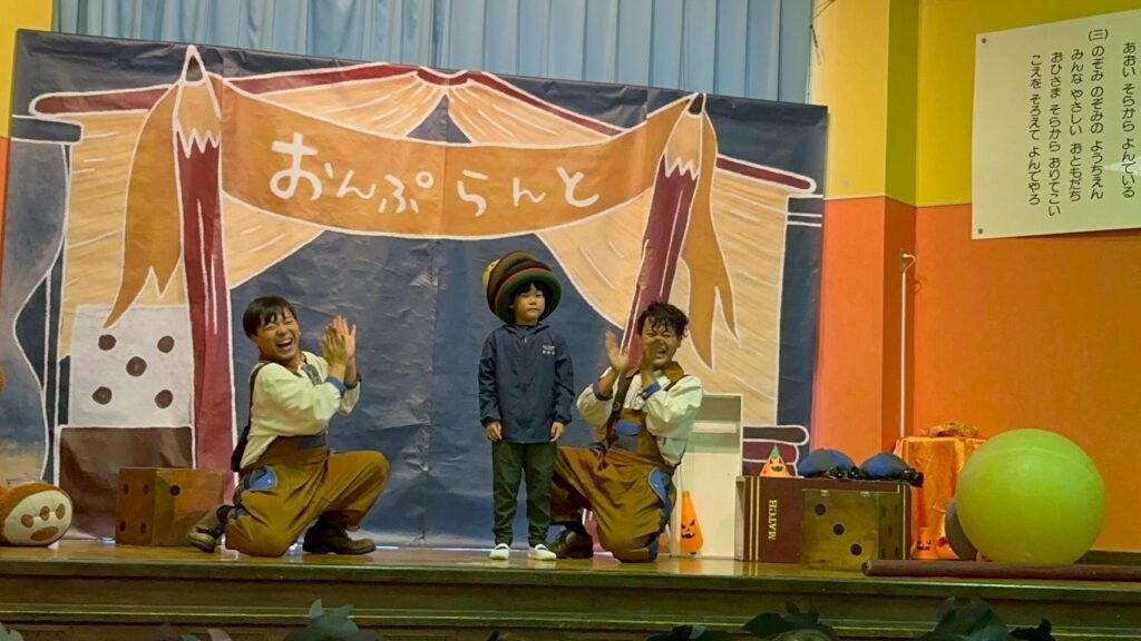途中、お手伝いに上がってくれた年長さん。ジェスチャーでおんぷらんとさんの動きを見て「真似するのかな?」と気づいて、一緒にパフォーマンスを披露してくれました☆