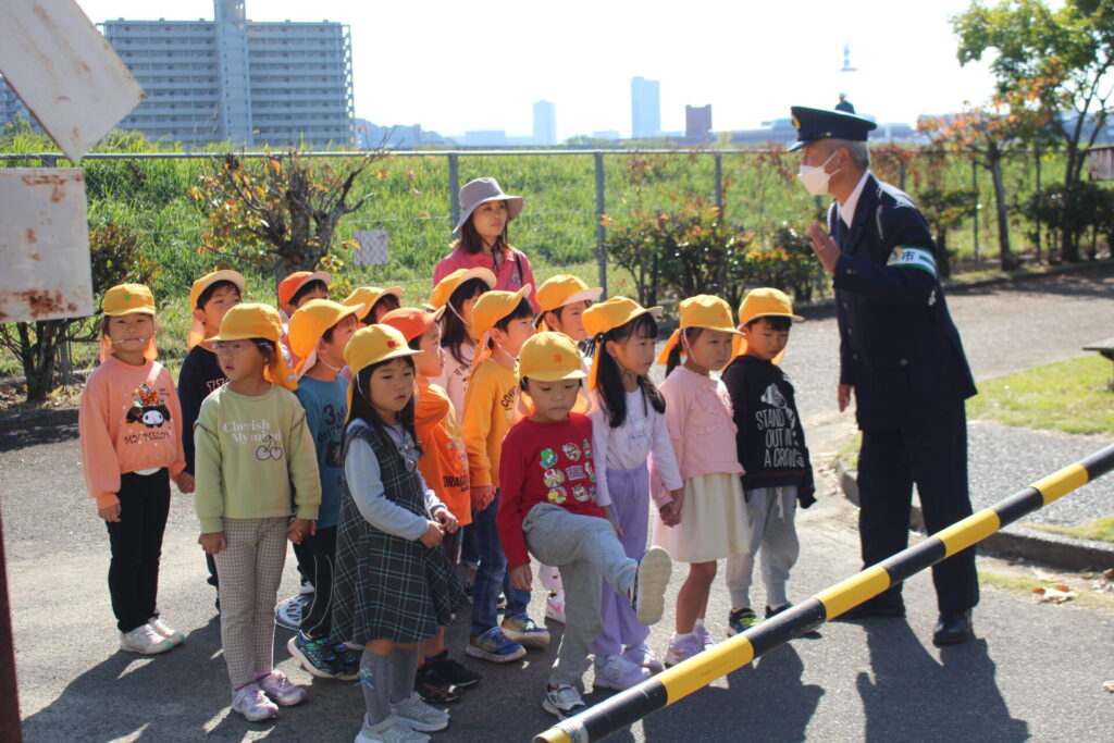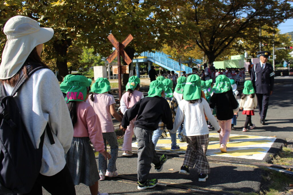 クラスごとに、横断歩道の渡り方や、踏切の渡り方を教えてもらいました!