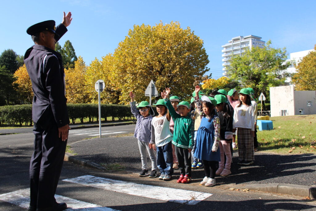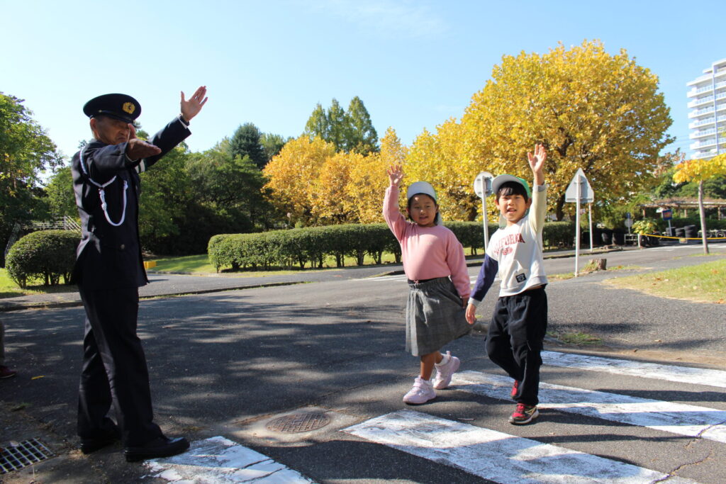 ♪「とまる・てをあげる・みぎみてひだりみてみぎをみる・みぎをみながらあるく・ひだりをみながらあるく」