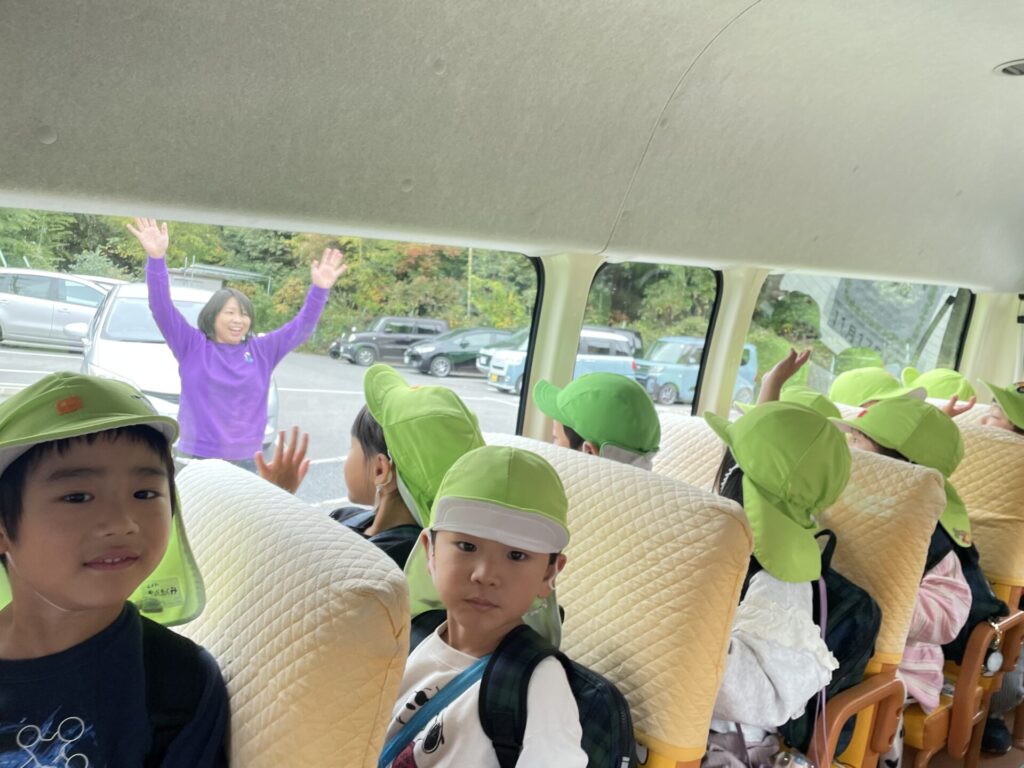 園長先生もお見送りに来てくれました「行ってらっしゃーい✋」「行ってきまーす✋」