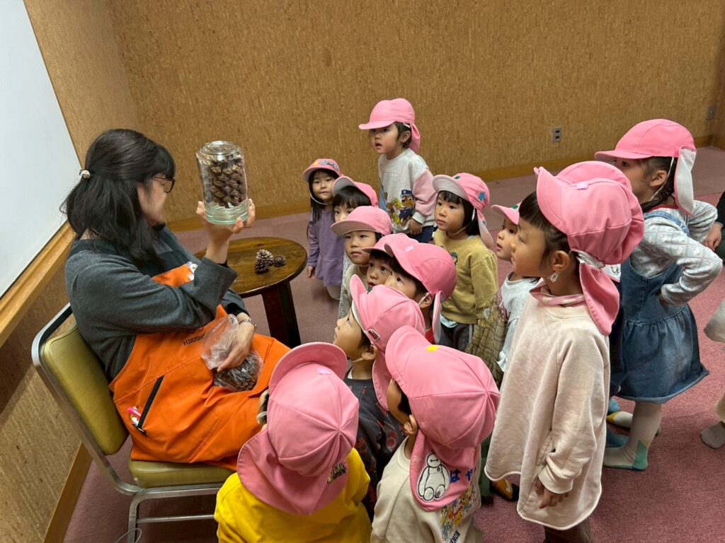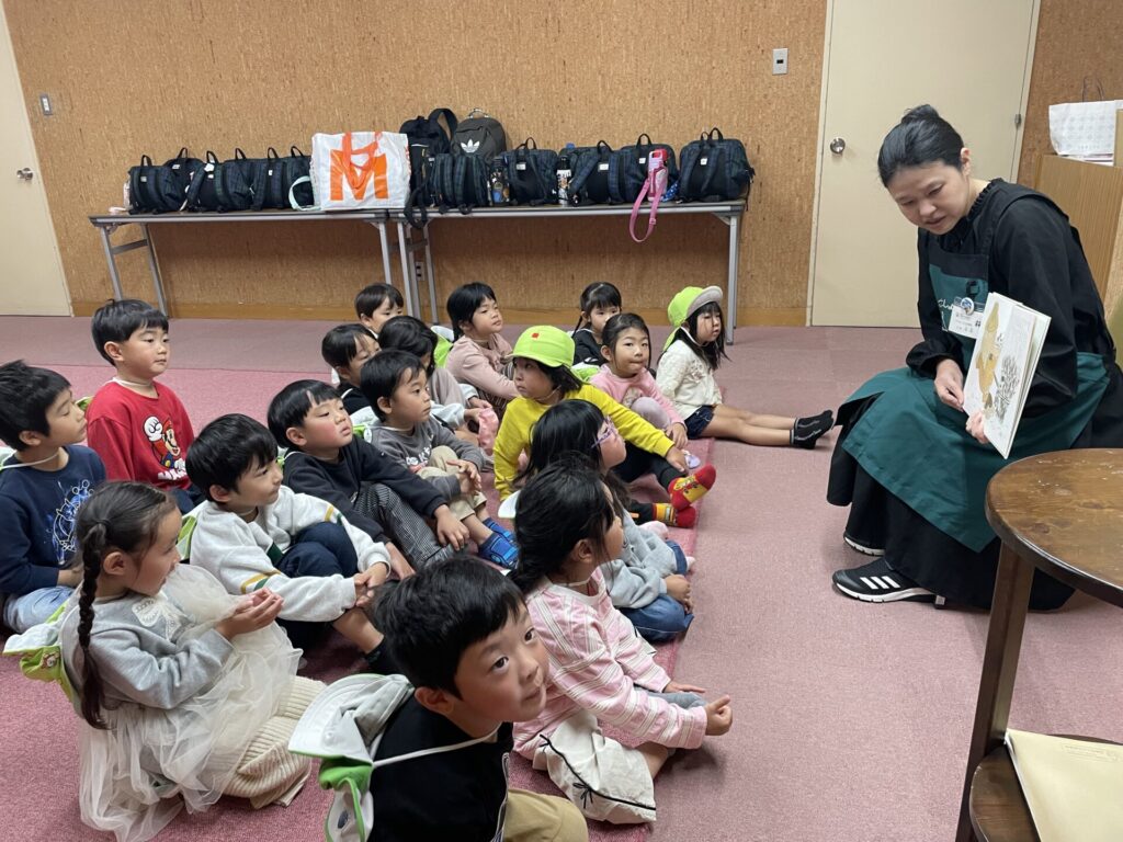 ムーンクラスは「びっくりまつぼっくり」「きょうのごはん」「くまのコールテンくん」の3冊の絵本を読んでもらいました♫