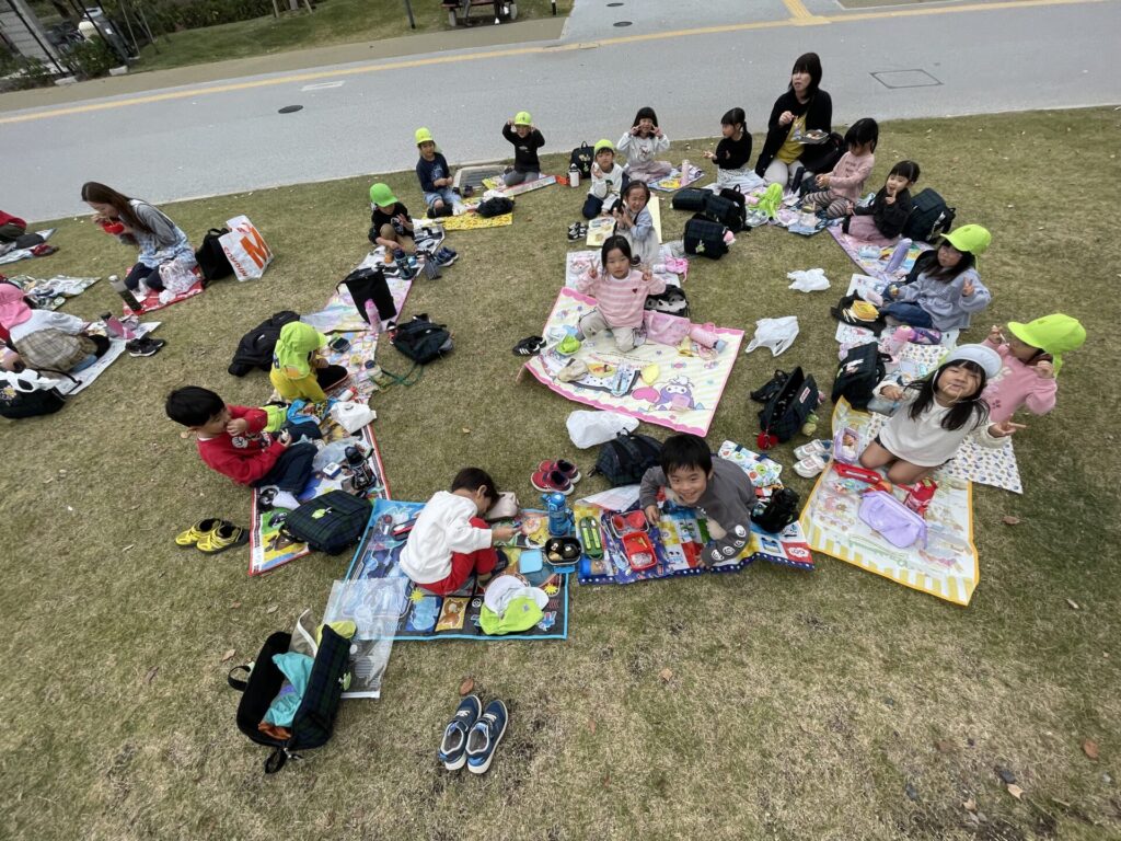 秋の風・紅葉を見ながら大好きなお友だちと・大好きなお家の人が作ってくれたお弁当を食べる幸せを感じながら「いただきまーす」