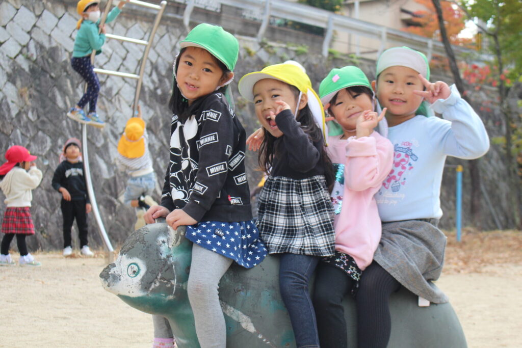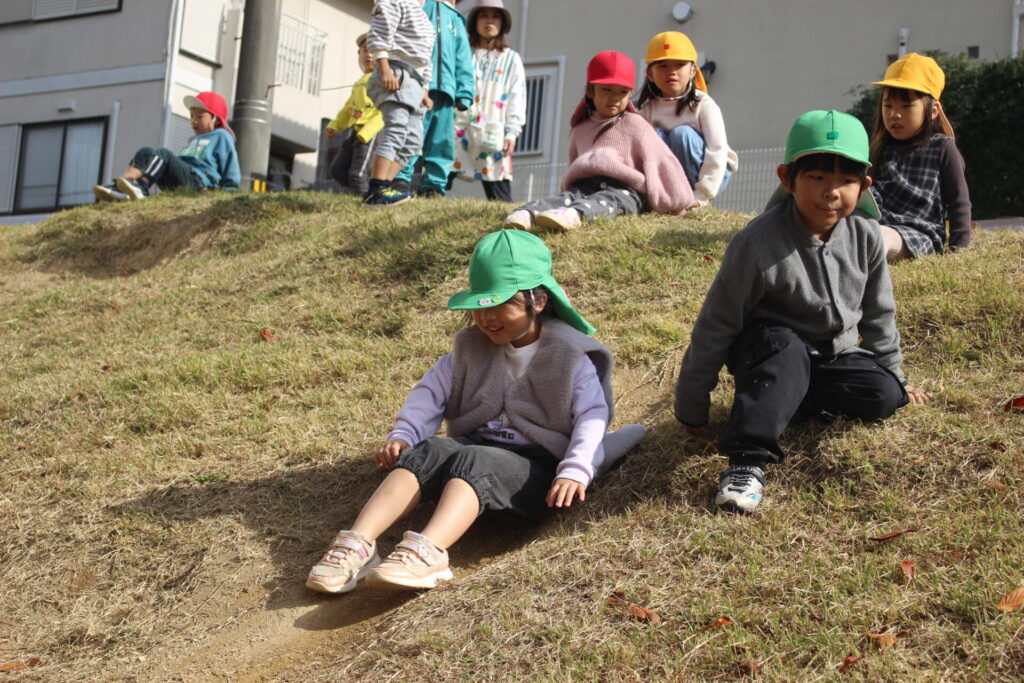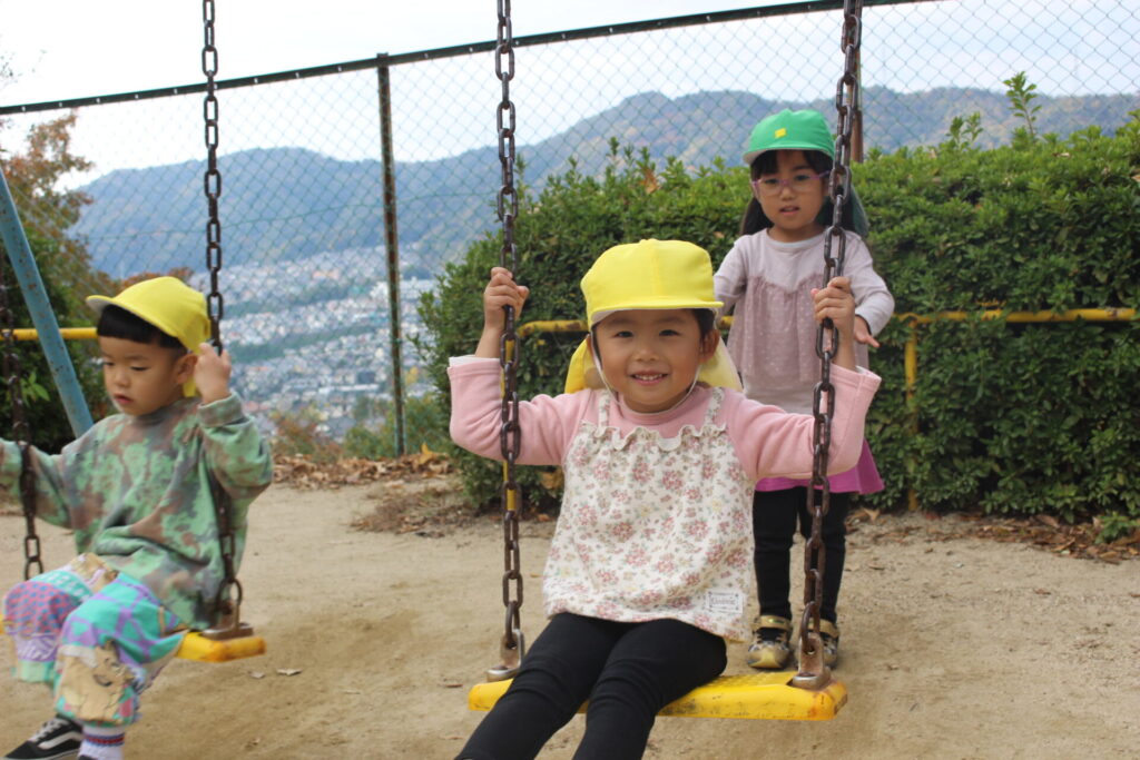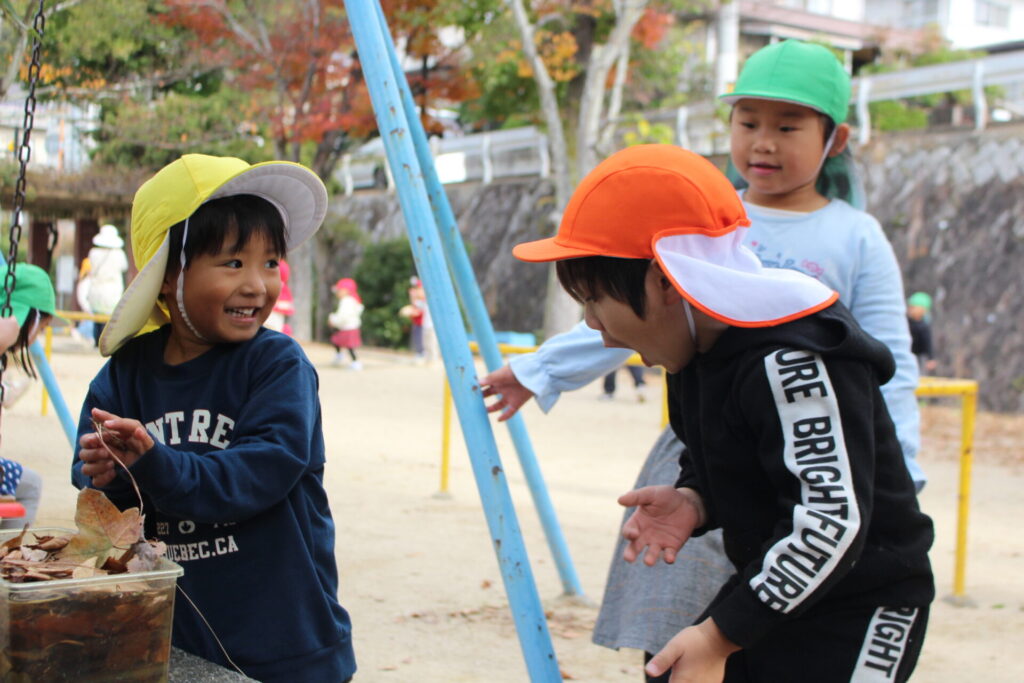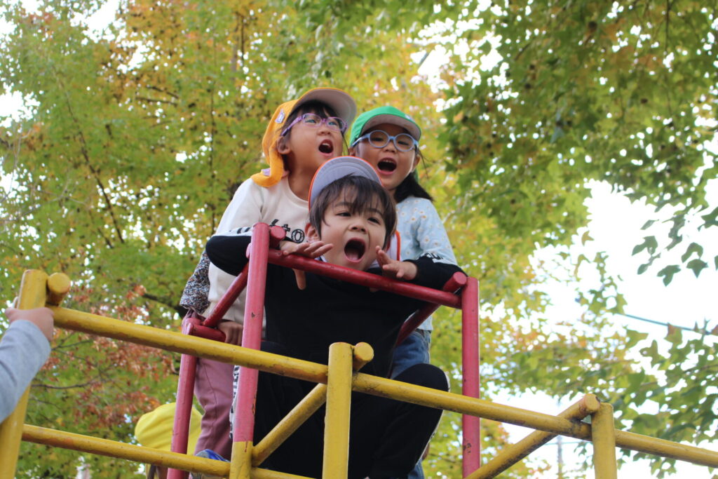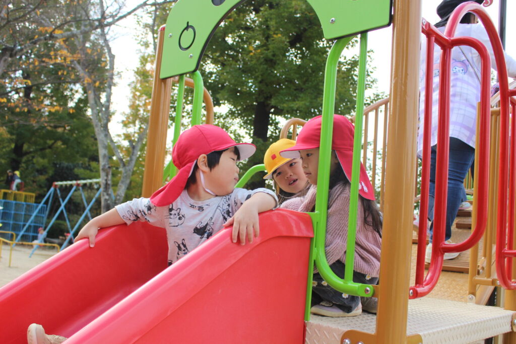 ブランコやすべり台、ジャングルジムなどの様々な遊具で遊んだり、落ち葉を拾って季節の自然に触れたりと、思い思いに楽しむ姿が見られました。