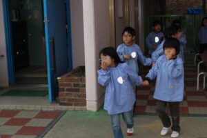 地震を知らせる放送や火災ベルが鳴ると不安な表情を見せる子もいましたが、これまでの経験が積み重なり、最後まで頑張って避難する姿が見られました。