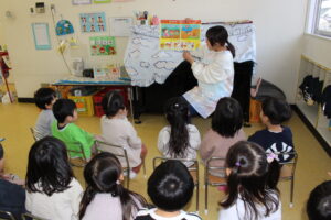 年少組の自由英語参観がありました。 正課の英語遊びと外遊びを見ていただきました! 歌や手遊びを通して、英語の…