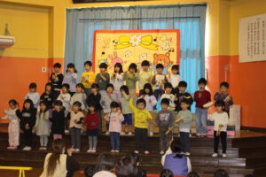 これまでクラスで大切に積み重ねてきたオペレッタや踊り、歌の場面を、他の学年のお友だちに見てもらい、少し緊張しながらも嬉しそうな表情がたくさん見られました☆