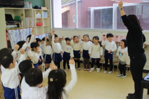 4・歌「勇気100%」「笑顔がかさなれば」 年中組全員