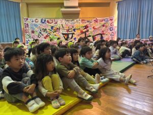 今日は年長組で、広島医療秘書こども専門学校の保育学生さんによる保育発表会を鑑賞しに行きました! 『しきから知…
