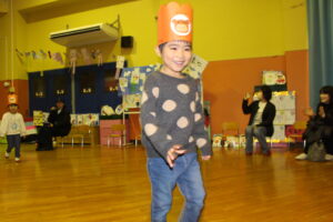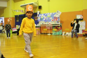 続いてはお名前紹介です!先生からの紹介に「はい!」と元気にお返事をしたり、自分で名前を言ったり…