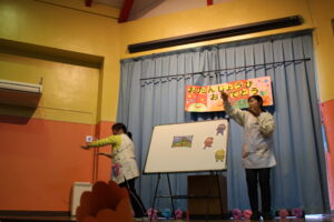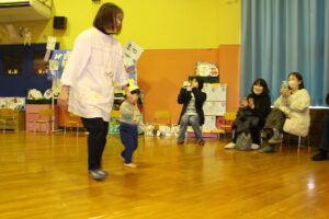 途中に妖しい黒忍者があらわれて、忍術対決をすることに!子どもたちも一緒に声を出しながら大盛り上がりでした♪