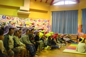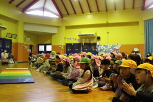 今日は年長組で、広島医療秘書こども専門学校の保育学生さんによる保育発表会を鑑賞しに行きました! 『しきから知…