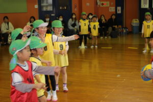 今日は、年長組でファミリー参観がありました。 最初は、体操の時間に楽しんでいる『タッチラグビー』を見てもらい…