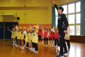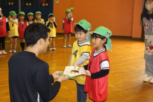 最初は、体操の時間に楽しんでいる『タッチラグビー』を見てもらいました☆