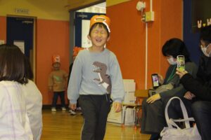 先生から紹介してもらったりお返事をしたり自分で名前を言ったり、ステージの上で頑張りました。