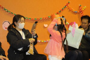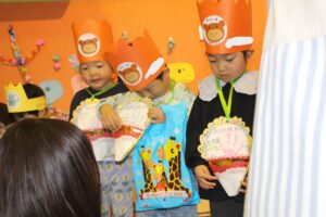 カードとプレゼント渡しです!写真撮影をした後は、保護者の方へカードとプレゼントを渡しに行きます。