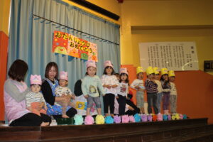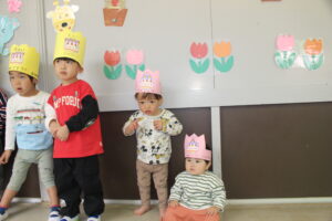 今年度、初めての誕生日会がありました🎉 スタンバイ中の誕生児さんです♡ 誕生児の入場です 誕生児さんに向けて…