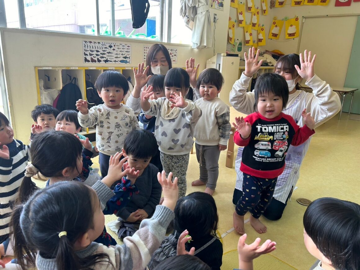 『クラウド(1歳児クラス)』と、『ウインド・レインボー(2歳・満3歳児クラス)』との交流。進級を目の前に控え…